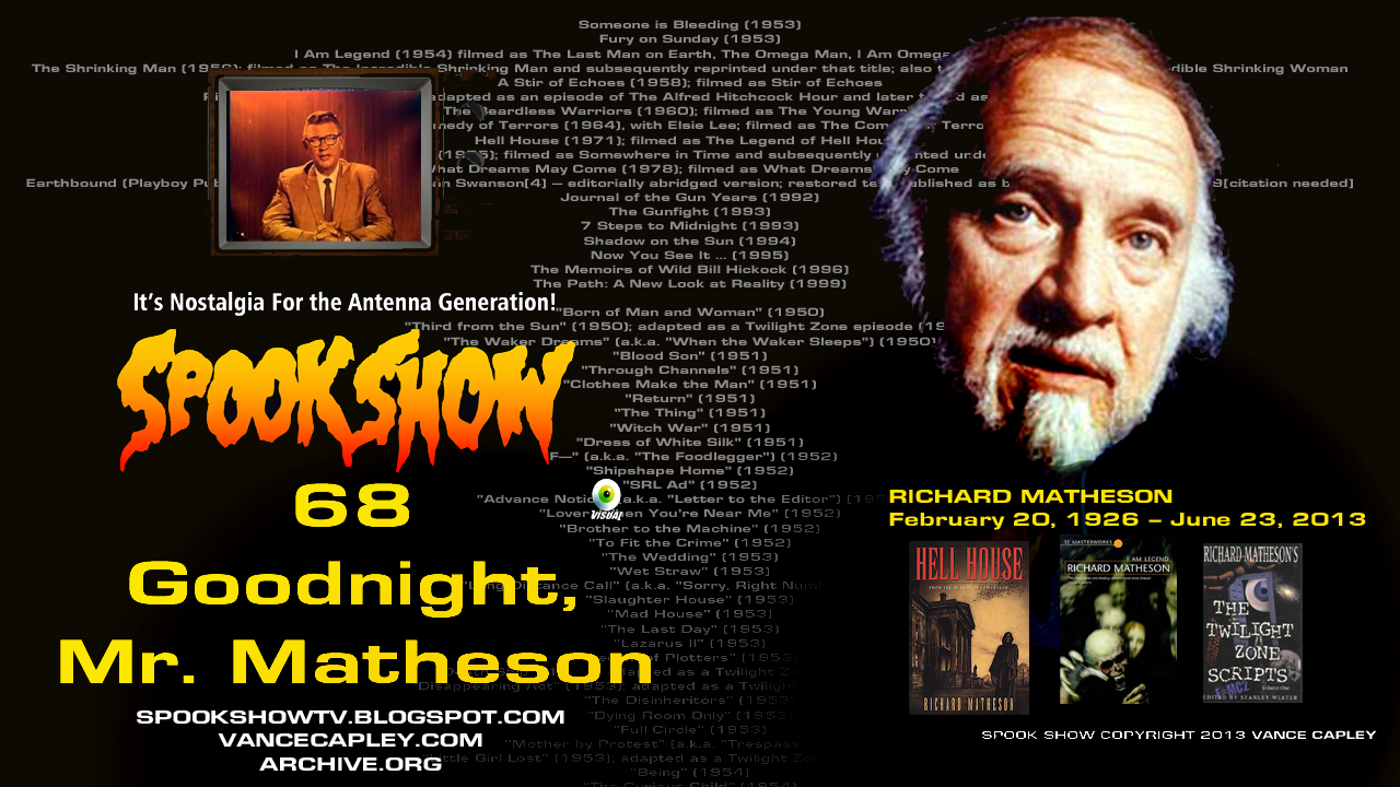 Richard Burton Matheson (February 20, 1926 – June 23, 2013) was an American author and screenwriter, primarily in the fantasy, horror, and science fiction genres. He may be known best as the author of I Am Legend, a 1954 horror novel that has been adapted for the screen three times, although five more of his novels have been adapted as major motion pictures: The Shrinking Man, Hell House, What Dreams May Come, Bid Time Return (filmed as Somewhere in Time), and A Stir of Echoes. Matheson also wrote numerous television episodes of The Twilight Zone for Rod Serling, including “Nightmare at 20,000 Feet” and “Steel”. He later adapted his 1971 short story “Duel” as a screenplay which was promptly directed by a young Steven Spielberg, for the TV movie of the same name.